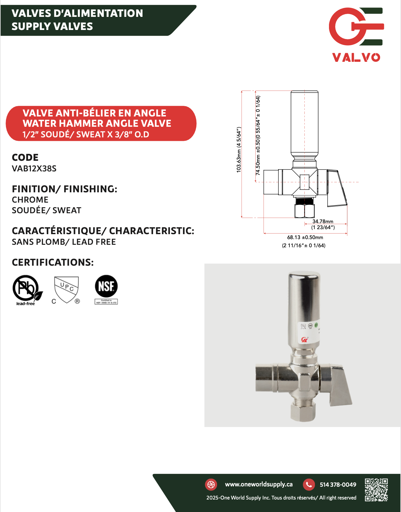 The water hammer valve Valvo™ is designed to effectively prevent damage to plumbing systems by reducing excessive water pressures. It protects your fittings, appliances and piping while eliminating unwanted noise caused by water hammer. Its rust- and corrosion-resistant chrome finish ensures optimum durability, even in harsh conditions, extending the life of your system’s essential components. Valvo™ the guarantee of reliable, long-lasting plumbing.
