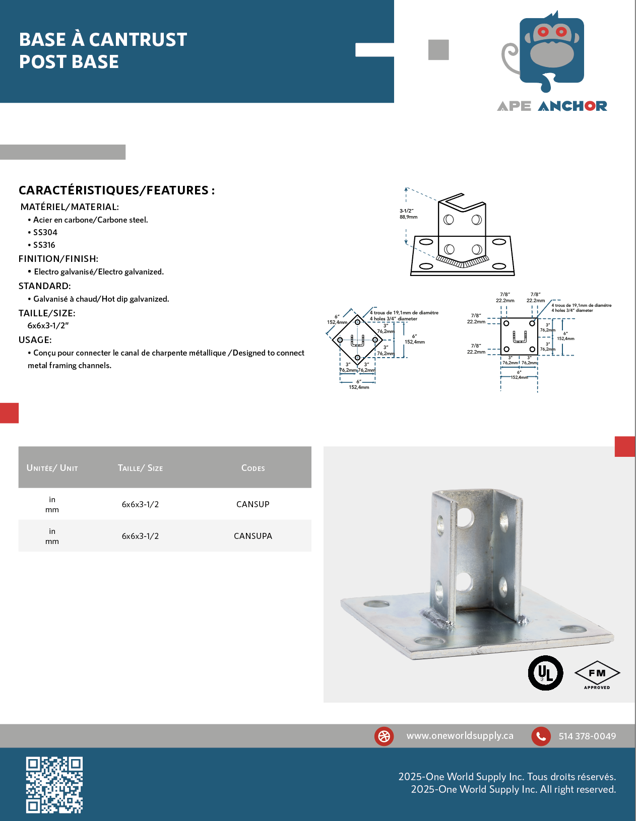 vous propose la Base de cantrust Apeanchor™ d’une qualité supérieure. Construites en acier galvanisé de première qualité pour une durabilité maximale, ces bases offrent une haute résistance aux charges et aux contraintes mécaniques. Leur finition anticorrosion protège efficacement contre l’oxydation et la corrosion, les rendant particulièrement adaptées aux environnements humides et industriels. Dotées d’un ajustement parfait, ces bases carrées, équipées de 4 trous de montage, assurent une fixation stable et sécurisée, et sont compatibles avec différents systèmes de cantrust.