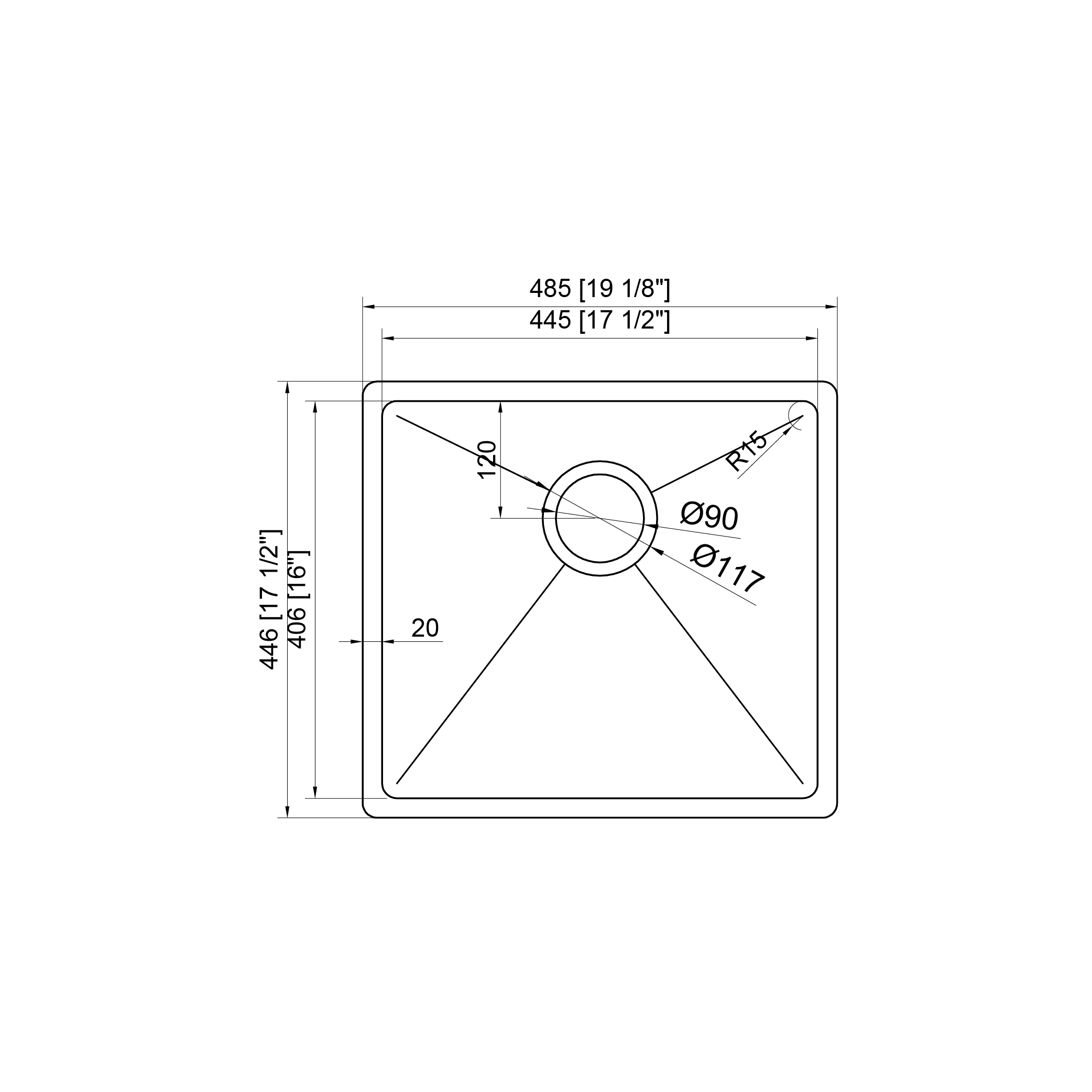 Dimensions extérieurs : 19 1/8″ x 17 1/2″ x 8″