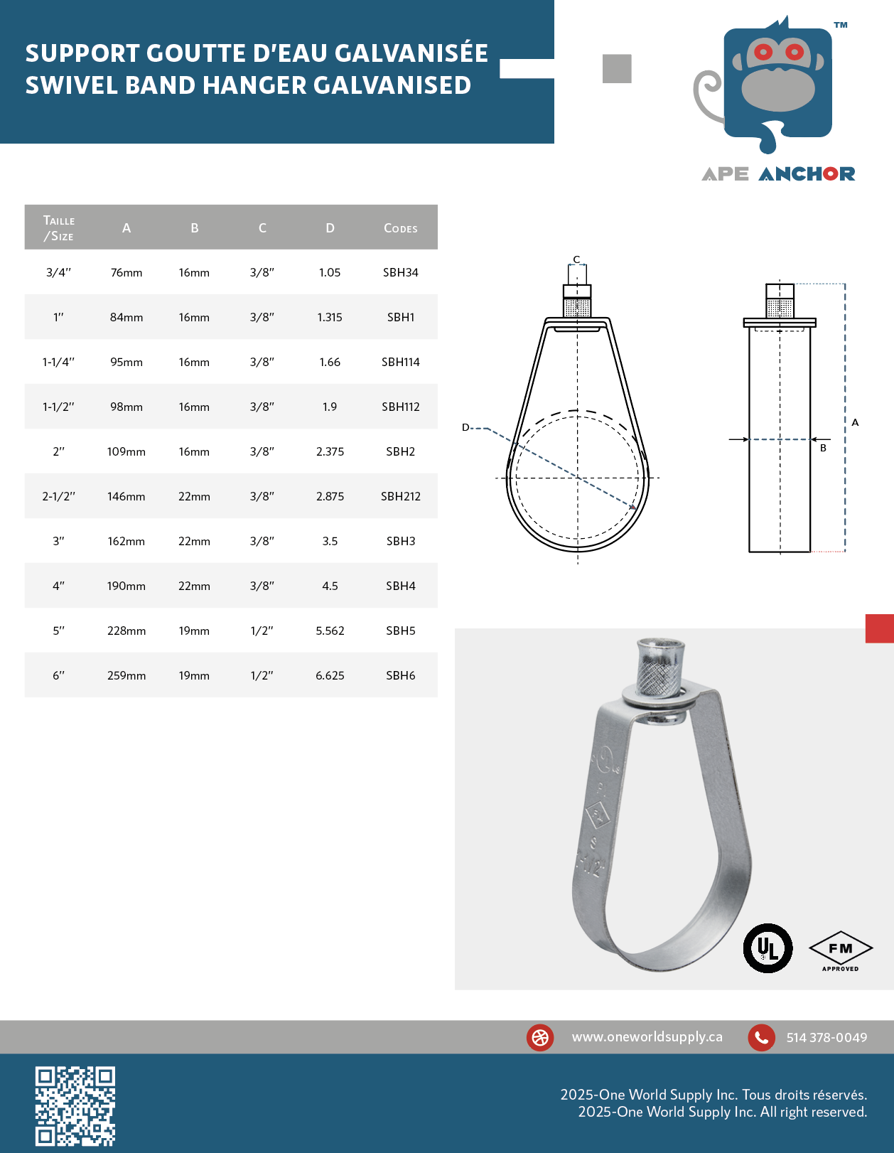 Taille : 1/2’’ - 3/4’’ - 1’’ - 1 1/4’’ - 1 1/2’’ - 2’’ - 2 1/2’’ - 3’’ - 4’’ - 5’’ - 6’’ - 8’’ - 10’’ - 12’’.