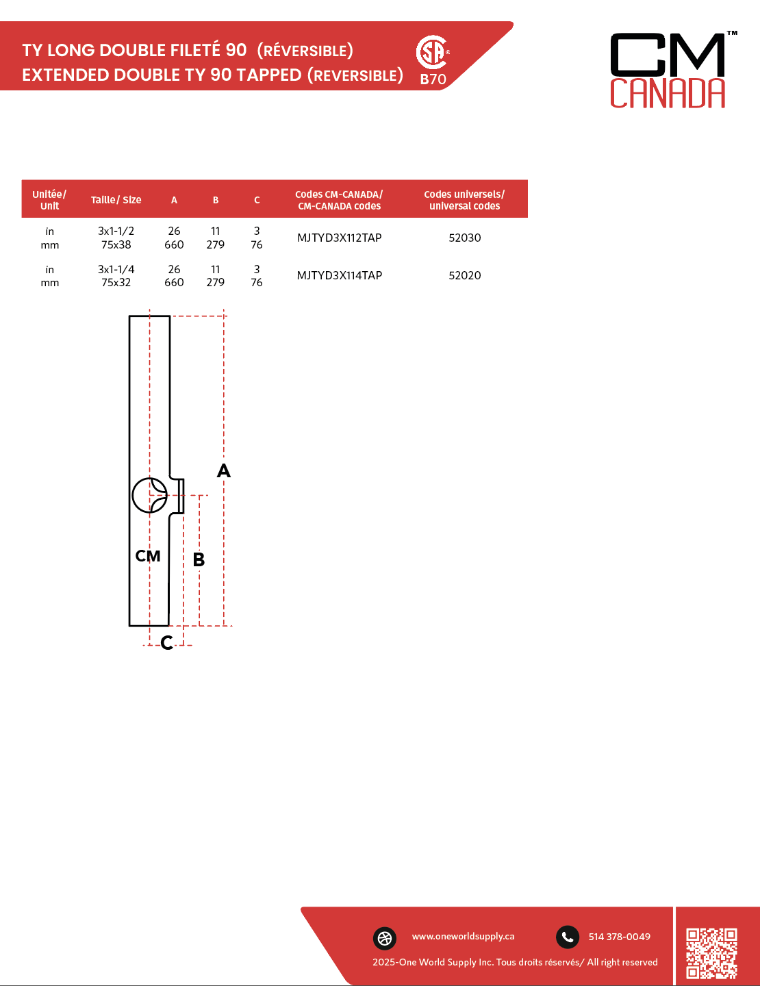 Taille : disponible en 3x1-1/2" et 3x1-1/4