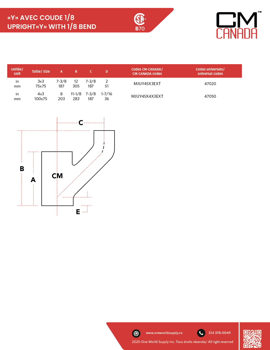 Type : Y avec coude 1/8, conçu pour permettre la jonction de plusieurs conduits dans les systèmes de plomberie, assurant ainsi un écoulement efficace et une distribution optimisée des fluides.